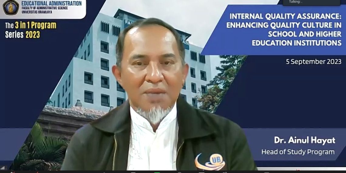 Kanal24, Malang – Program Studi Administrasi Pendidikan, Fakultas Ilmu Administrasi (FIA) Universitas Brawijaya (UB) bekerjasama dengan Lagos State University, Nigeria menggelar International Webinar The 3 in 1 Program Series 2023 yang mengangkat tema “Internal Quality Assurance: Enhancing Quality Culture in School and Higher Education Institutions” secara hybrid melalui platform zoom pada hari Selasa (05/09/2023).