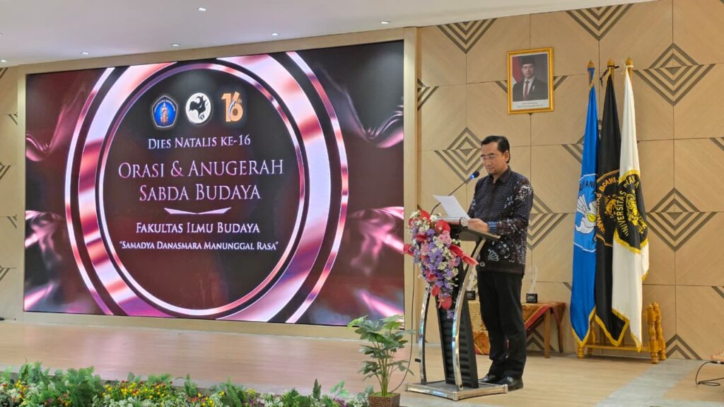 Kanal24, Malang – Universitas Brawijaya (UB) kembali menegaskan peran sebagai perguruan tinggi yang aktif menjaga dan mengembangkan kebudayaan Indonesia. Melalui penyelenggaraan Anugerah Sabda Budaya (ASB) 2025, bagian dari Dies Natalis ke-16 Fakultas Ilmu Budaya (FIB), UB menunjukkan komitmen memperkuat ekosistem budaya sekaligus diplomasi kebudayaan di tengah tekanan globalisasi dan dominasi teknologi digital.