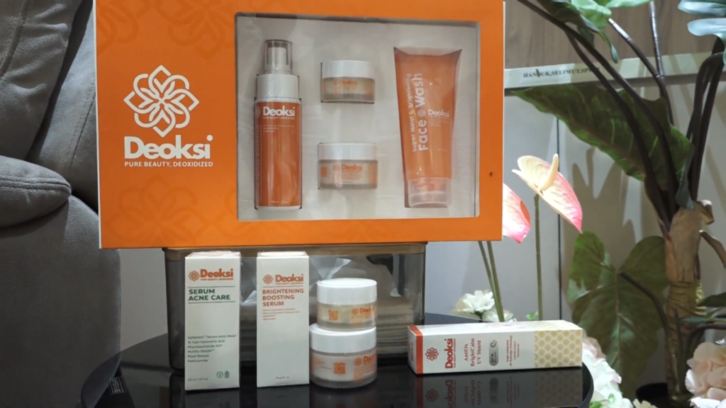 Selain treatment klinis, Deoksi Clinic juga menghadirkan produk perawatan dengan konsep slow aging, yaitu perawatan yang menyesuaikan kebutuhan kulit secara bertahap. Salah satu produk unggulannya berupa serum dengan kandungan aktif yang ditujukan membantu regenerasi kulit dan mengatasi flek.