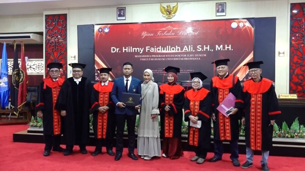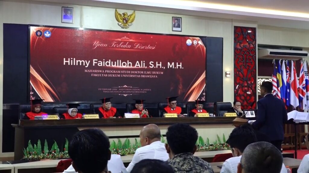 Kanal24, Malang – Ujian Terbuka Disertasi Dr. Hilmy Faidulloh Ali, S.H., M.H. yang mengangkat tema pengaturan perdagangan pengaruh (trading in influence) oleh partai politik sebagai tindak pidana korupsi di Indonesia digelar oleh Fakultas Hukum Universitas Brawijaya pada Senin (09/02/2026), bertempat di Auditorium Fakultas Hukum Gedung A Lantai 6. Disertasi ini lahir dari kegelisahan akademik sekaligus praktik hukum yang selama ini menyoroti celah pengaturan hukum pidana korupsi, khususnya terhadap peran dan posisi partai politik dalam praktik perdagangan pengaruh yang belum diatur secara spesifik dalam regulasi nasional.