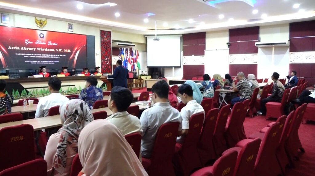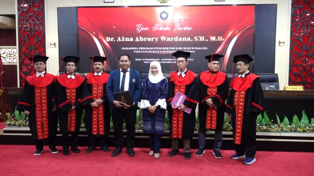 Kanal24, Malang – Kebutuhan akan kepastian hukum dalam pengembangan desa wisata menjadi isu strategis di tengah pesatnya pertumbuhan sektor pariwisata berbasis masyarakat di Indonesia. Isu tersebut menjadi fokus utama dalam Ujian Terbuka Disertasi berjudul “Pengaturan Pengadaan Tanah Untuk Pengembangan Desa Wisata Berdasarkan Prinsip Kepastian Hukum”, yang diselenggarakan oleh Fakultas Hukum Universitas Brawijaya (FH UB) pada Senin (22/12/2025) di Auditorium Gedung A Lantai 6 Universitas Brawijaya. Ujian terbuka ini menghadirkan Dr. Azna Abrory Wardana, S.H., M.H. sebagai promovendus, dengan Prof. Dr. Imam Koeswahyono, S.H., M.Hum. selaku promotor.