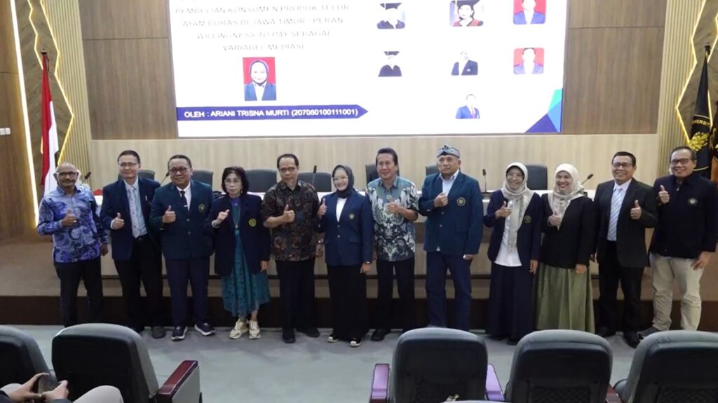 Dalam sidang tersebut, Ariani mempresentasikan disertasinya berjudul “Eksplorasi Integrasi Keputusan Pembelian Konsumen Produk Telur Ayam Buras di Jawa Timur: Peran Willingness to Pay sebagai Variabel Mediasi.”
