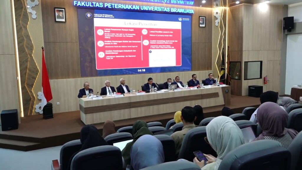 Kanal24, Malang – Upaya memperkuat ketahanan pakan ternak nasional terus didorong melalui riset akademik. Salah satunya ditunjukkan dalam Disertasi FAPET UB bertajuk “Potensi Rumput Gajah Merah sebagai Sumber Hijauan Pakan Ternak Ruminansia” yang diselenggarakan oleh Fakultas Peternakan Universitas Brawijaya (FAPET UB) pada Senin (19/01/2026), bertempat di Auditorium Lantai 5 Gedung Pascasarjana Fakultas Peternakan Universitas Brawijaya. Disertasi ini menjadi ruang pemaparan hasil riset mendalam yang menyoroti peluang pemanfaatan kultivar baru rumput gajah merah sebagai pakan ternak fungsional di Indonesia.
