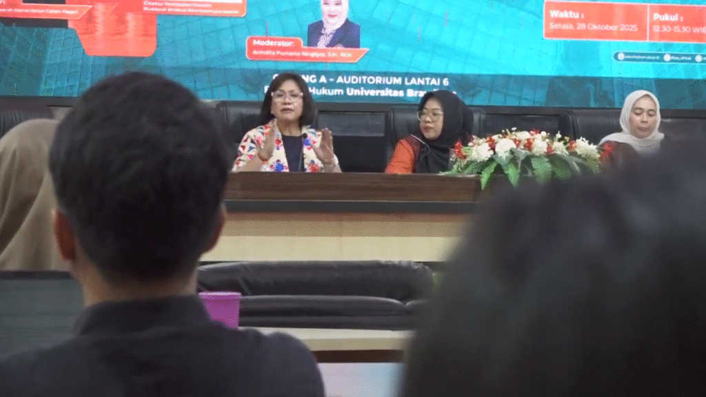 Ketua Kompartemen Hukum Administrasi Negara FH UB, Amelia Ayu Paramitha, S.H., M.H., menegaskan bahwa kuliah tamu ini diharapkan dapat menjembatani teori hukum dengan praktik kebijakan publik.