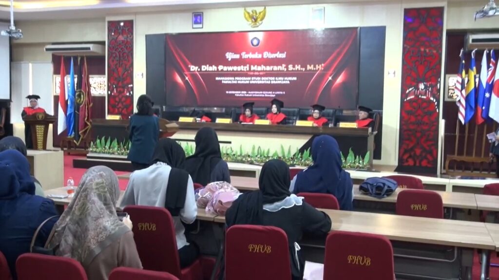 Kanal24, Malang – Kompleksitas isuperlindungan data pribadi dalam transaksi digital lintas negara menjadi sorotan utama dalam Ujian Terbuka Disertasi yang diselenggarakan Fakultas Hukum Universitas Brawijaya (FH UB). Agenda akademik tersebut digelar pada Rabu, (10/12/2025), di Auditorium Gedung A lantai 6 FH UB, menghadirkan pemaparan mendalam dari Dr. Diah Pawestri Maharani, S.H., M.H., sebagai promovenda, serta penilaian kritis dari penguji tamu FH UI, Dr. Edmon Makarim, S.Kom., S.H., LL.M.