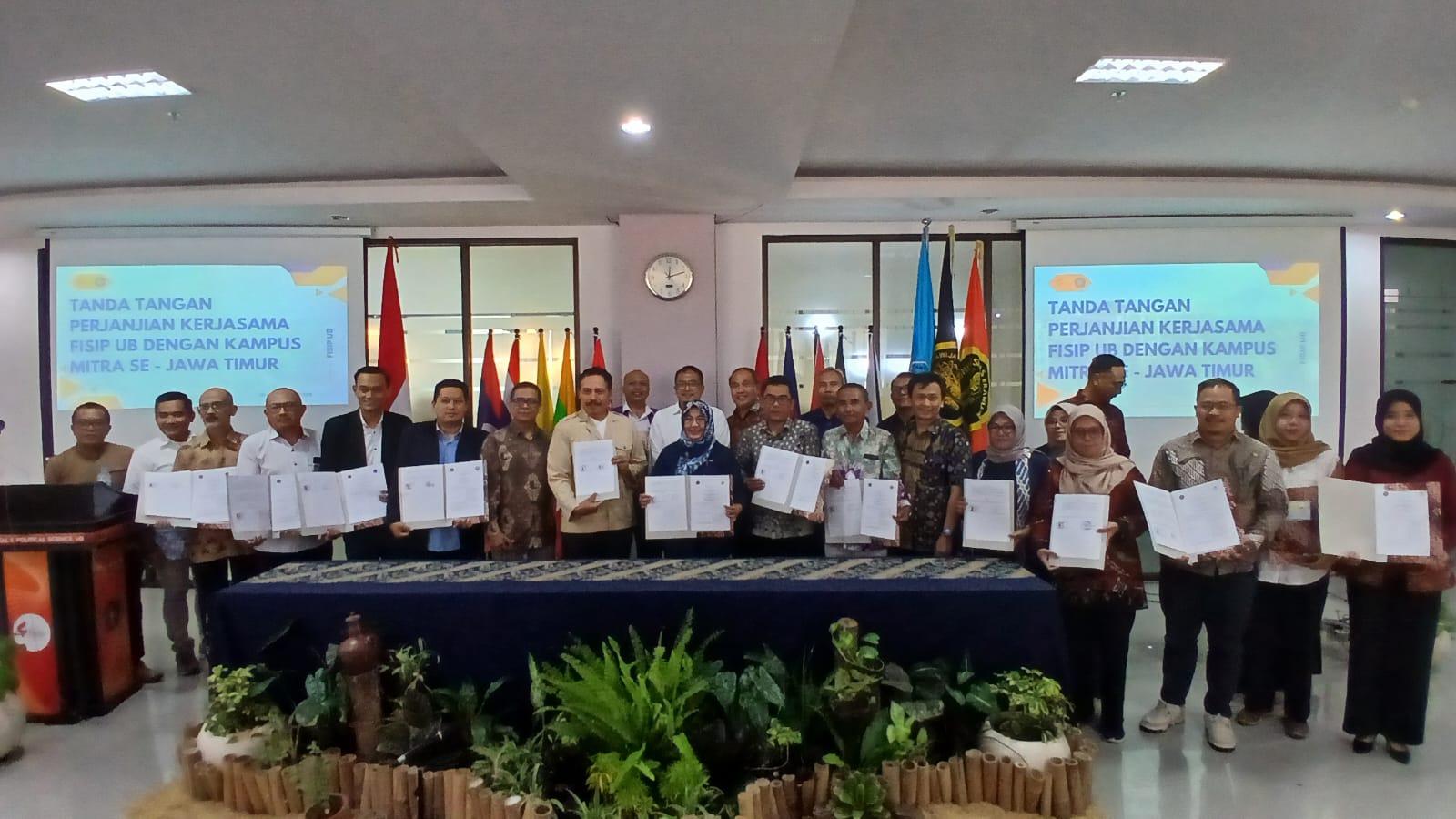 Kegiatan yang digelar di Aula Nuswantara FISIP UB ini dihadiri pimpinan fakultas dari sejumlah universitas mitra, antara lain Universitas Darul Ulum Jombang, Universitas Trunojoyo Madura, Universitas Islam Balitar, Universitas Merdeka Malang, Universitas Muhammadiyah Malang, Universitas Kadiri, Universitas Negeri Malang, UPN Veteran Jawa Timur, hingga Binus Malang dan Universitas Dr. Soetomo.