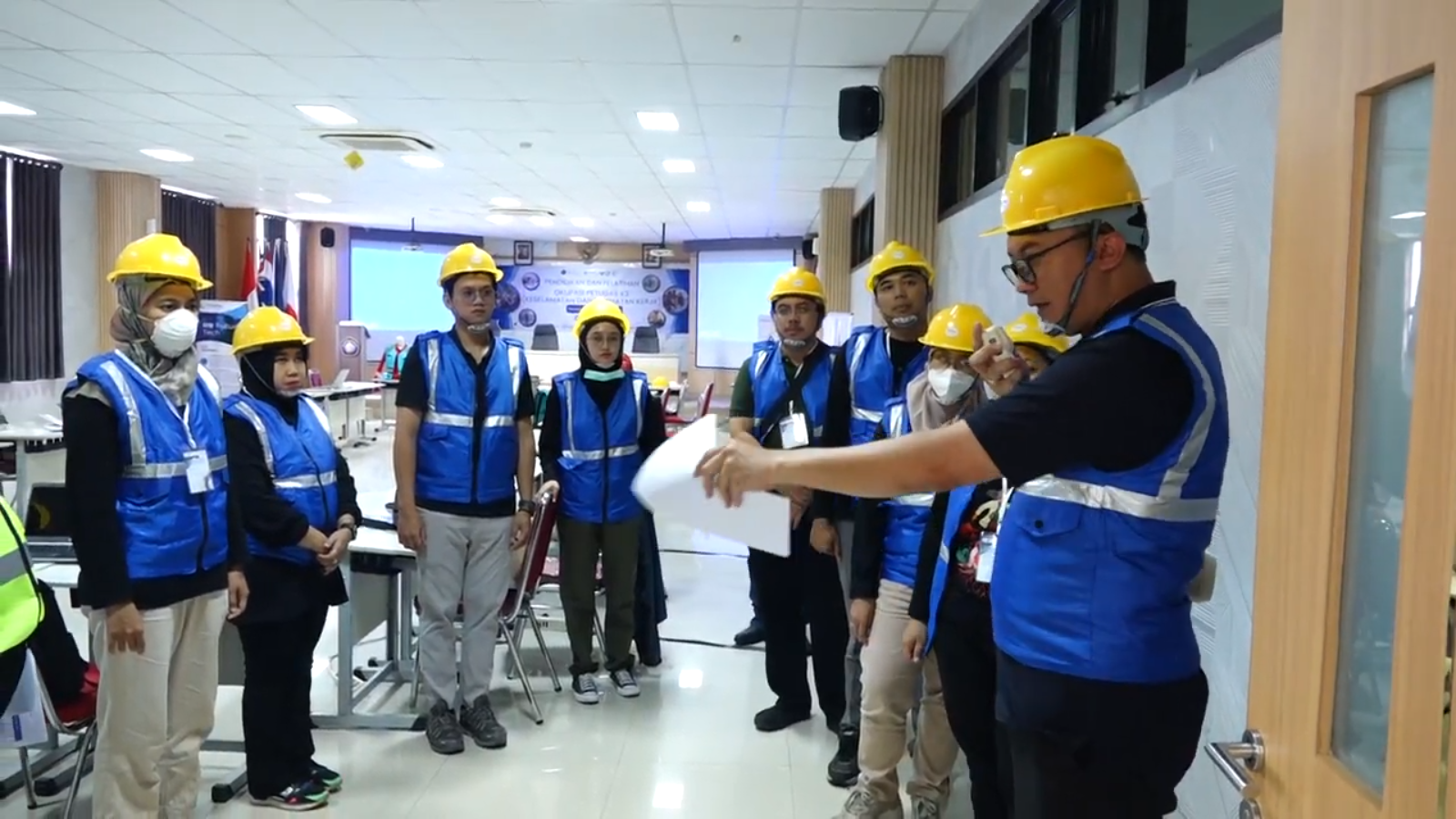 Briefing tim sebelum praktek Diklat dan Sertifikasi Okupasi K3 FKH UB (Yordan)