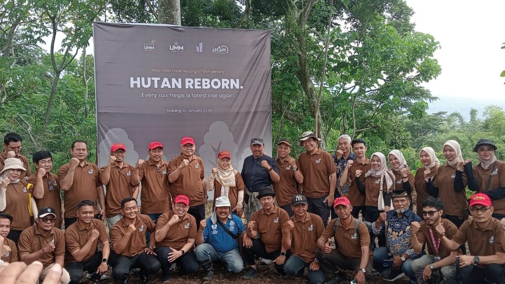 Kanal24, Malang – Peringatan ulang tahun ke-6, Rayz UMM Hotel Malang pada Kamis, (15/1/2026) hari ini ditandai dengan program Hutan Reborn sebagai bentuk tanggung jawab kepada alam. Kegiatan ini diselenggarakan di Lahan Camp 3 Retaka, UMM, yang berlokasi di Sumbersekar, Dau, Kabupaten Malang, merupakan komitmen Rayz UMM Hotel Malang dalam mengintegrasikan perayaan hari jadi dengan aksi pelestarian lingkungan yang berkelanjutan.