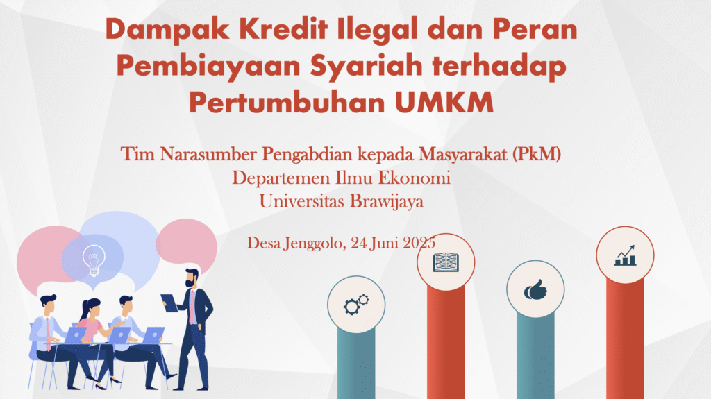 Untuk memperluas pemahaman masyarakat terhadap keuangan syariah sekaligus memperkuat UMKM halal, Departemen Ilmu Ekonomi Fakultas Ekonomi dan Bisnis UB menggelar kegiatan “Sosialisasi Literasi Keuangan Syariah untuk Pelaku UMKM” di Desa Jenggolo, Kecamatan Kepanjen, Kabupaten Malang, pada 24 Juni 2025.