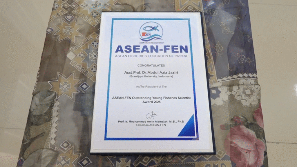 Dedikasi itulah yang akhirnya mengantarkan Aziz menembus panggung internasional. Ia dianugerahi Outstanding Young Fisheries Scientist Award 2025 dalam ajang The 13th International Fisheries Symposium, yang diselenggarakan oleh ASEAN Fisheries Education Network (ASEAN-FEN)—konsorsium universitas se-Asia Tenggara di bidang perikanan dan akuakultur.