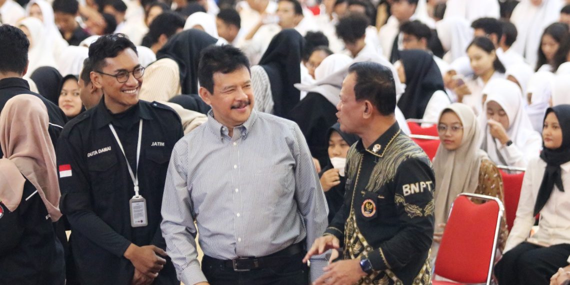 Acara dilanjutkan dengan pemaparan materi dari Deputi Bidang Pencegahan, Perlindungan, & Deradikalisasi Badan Nasional Penanggulangan Terorisme Republik Indonesia (BNPT RI), Mayjen TNI Nisan Setiadi, S.E., M.Si.