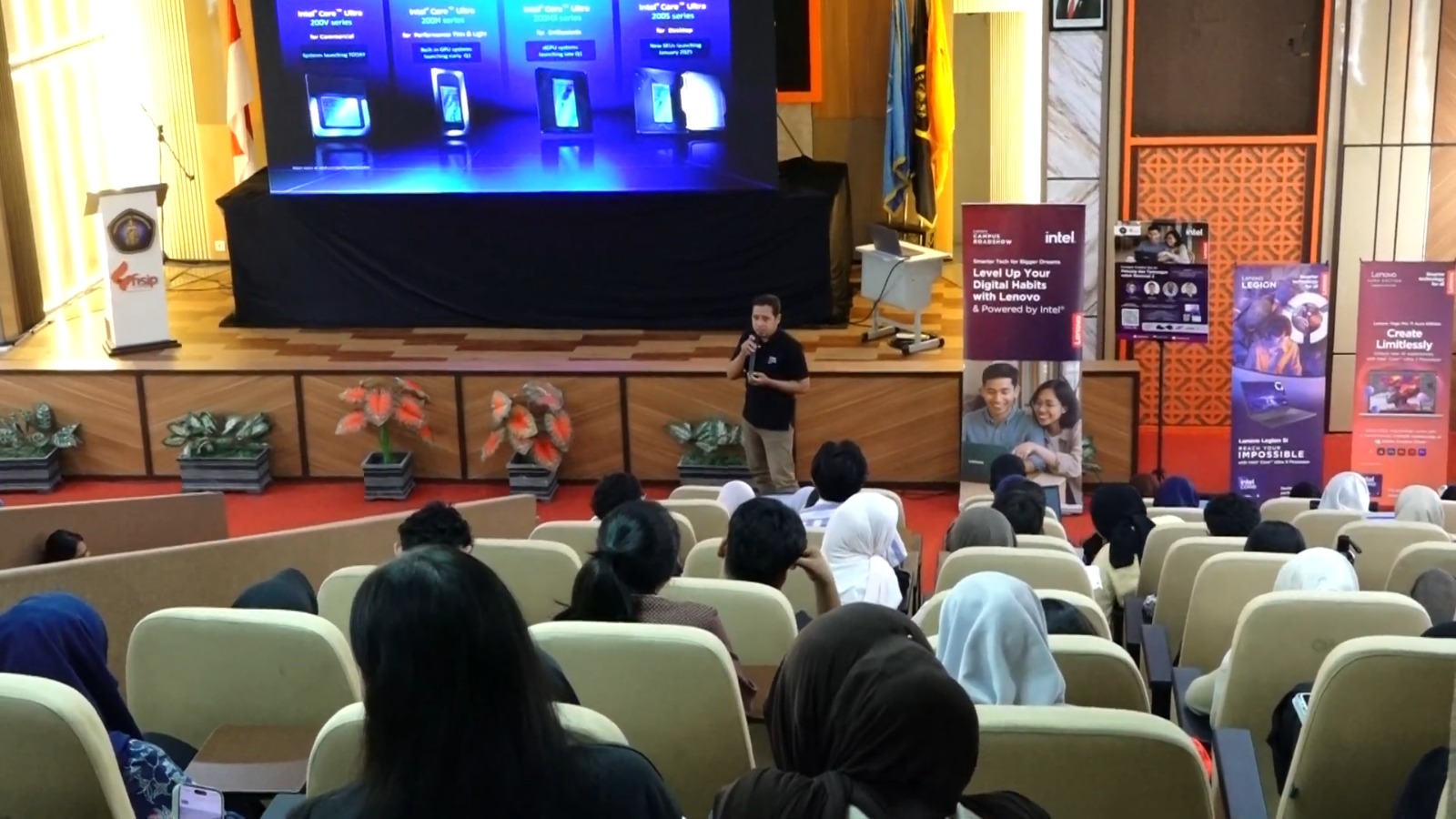 Selain sesi materi dari Lenovo dan Intel, acara ini juga diisi dengan berbagi pengalaman dari praktisi konten kreatif, Hari Obbie. Ia menekankan bahwa AI seharusnya menjadi alat bantu dalam proses kreatif, bukan pengganti kreativitas manusia. Melalui contoh-contoh praktis, mahasiswa diajak untuk memahami bagaimana AI dapat digunakan untuk mempercepat ide, memperkaya visual, dan meningkatkan kualitas produksi konten.