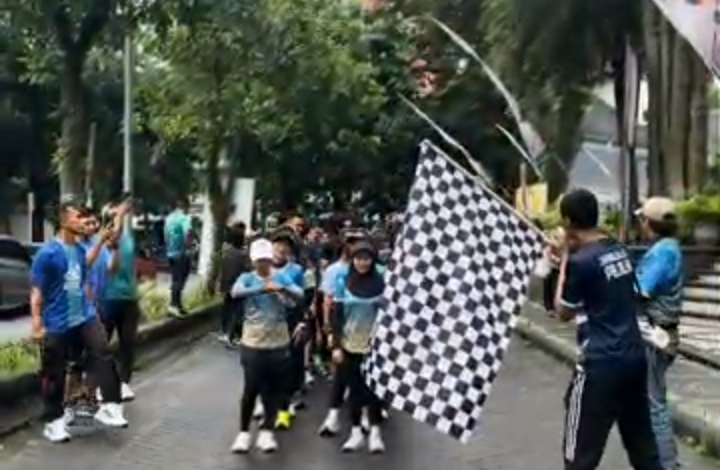 Sebelum start para peserta melakukan pemanasan bersama agar kegiatan lari berjalan lancar.