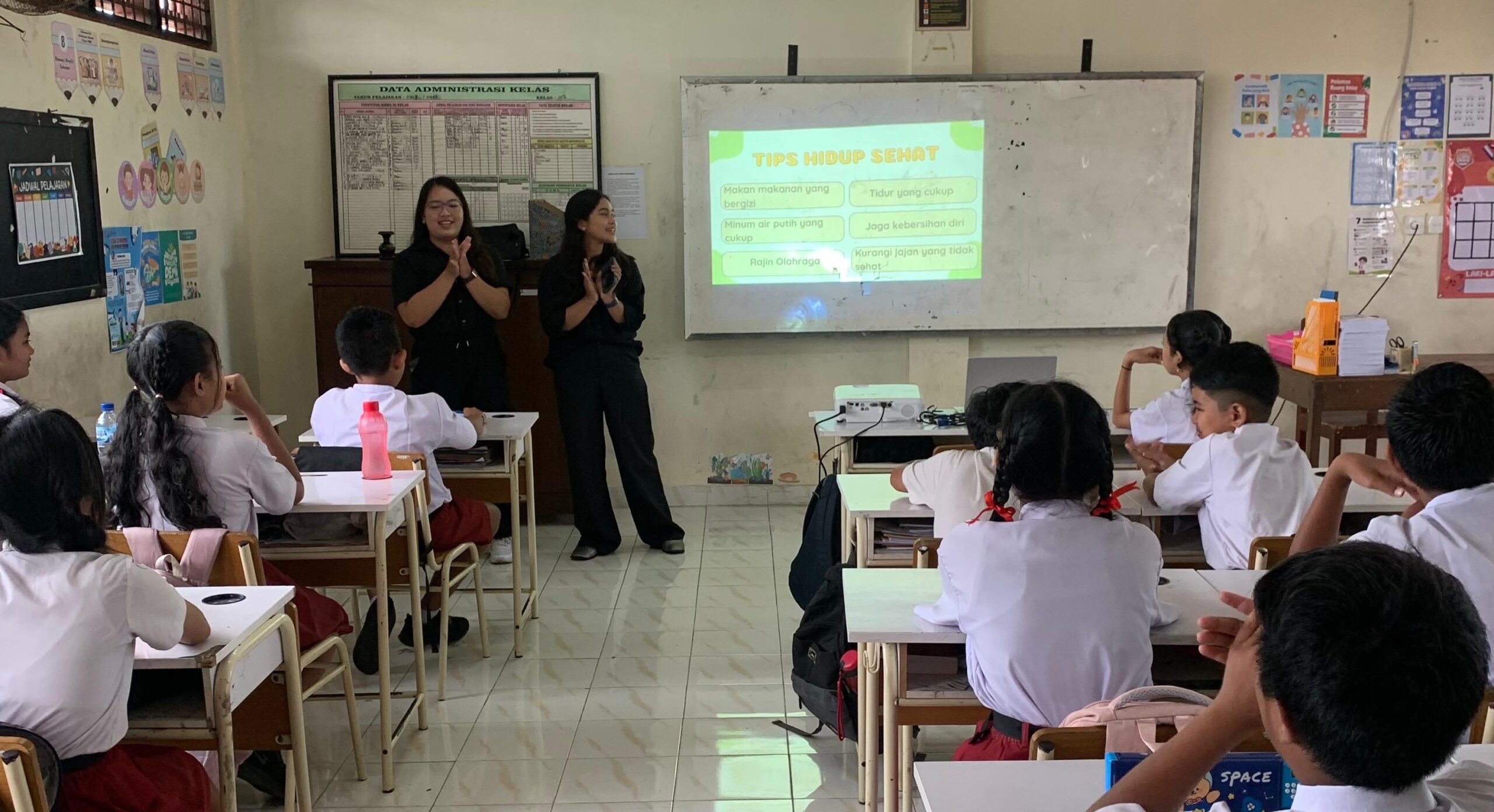 Ketua Program Studi Manajemen FEB Unmas Denpasar, Dr. Gde Bayu Surya Parwita, SE., MM.,memimpin kegiatan ini melibatkan dosen dan mahasiswa yang berinteraksi langsung dengan 27 siswa kelas VI. Pendekatan edukatif dilakukan agar siswa tidak hanya memahami, tetapi juga mampu mempraktikkan pola hidup sehat secara konsisten dalam kehidupan sehari-hari.
