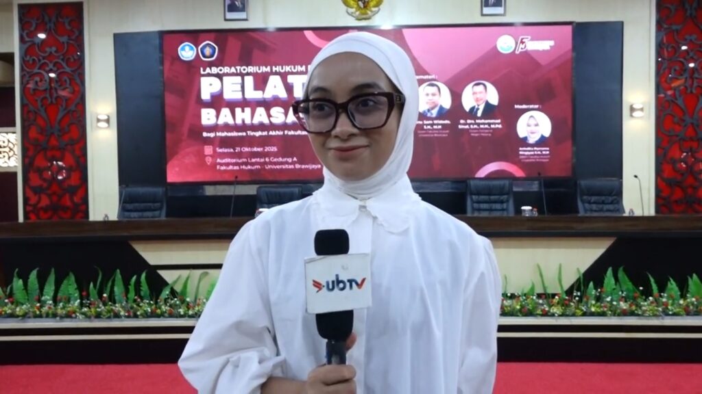 Kanal24, Malang — Sebagai upaya memperkuat pemahaman mahasiswa terhadap ragam bahasa hukum yang menjadi dasar dalam praktik profesi hukum, Laboratorium Hukum Fakultas Hukum Universitas Brawijaya (FH UB) menyelenggarakan Pelatihan Bahasa Hukum di Auditorium lantai 6 Gedung A FH UB pada Selasa (21/10/2025). Kegiatan ini dihadiri ratusan mahasiswa yang antusias mendalami penggunaan bahasa hukum secara tepat dan profesional. Acara dibuka secara resmi oleh Dekan FH UB, Dr. Aan Eko Widiarto, S.H., M.Hum, serta menghadirkan dua narasumber ahli, yaitu Dr. dr. Muhammad Sinal, S.H., M.H., M.Pd. dari Politeknik Negeri Malang dan Ibnu Sam Widodo, S.H., M.H. dari Fakultas Hukum UB.
