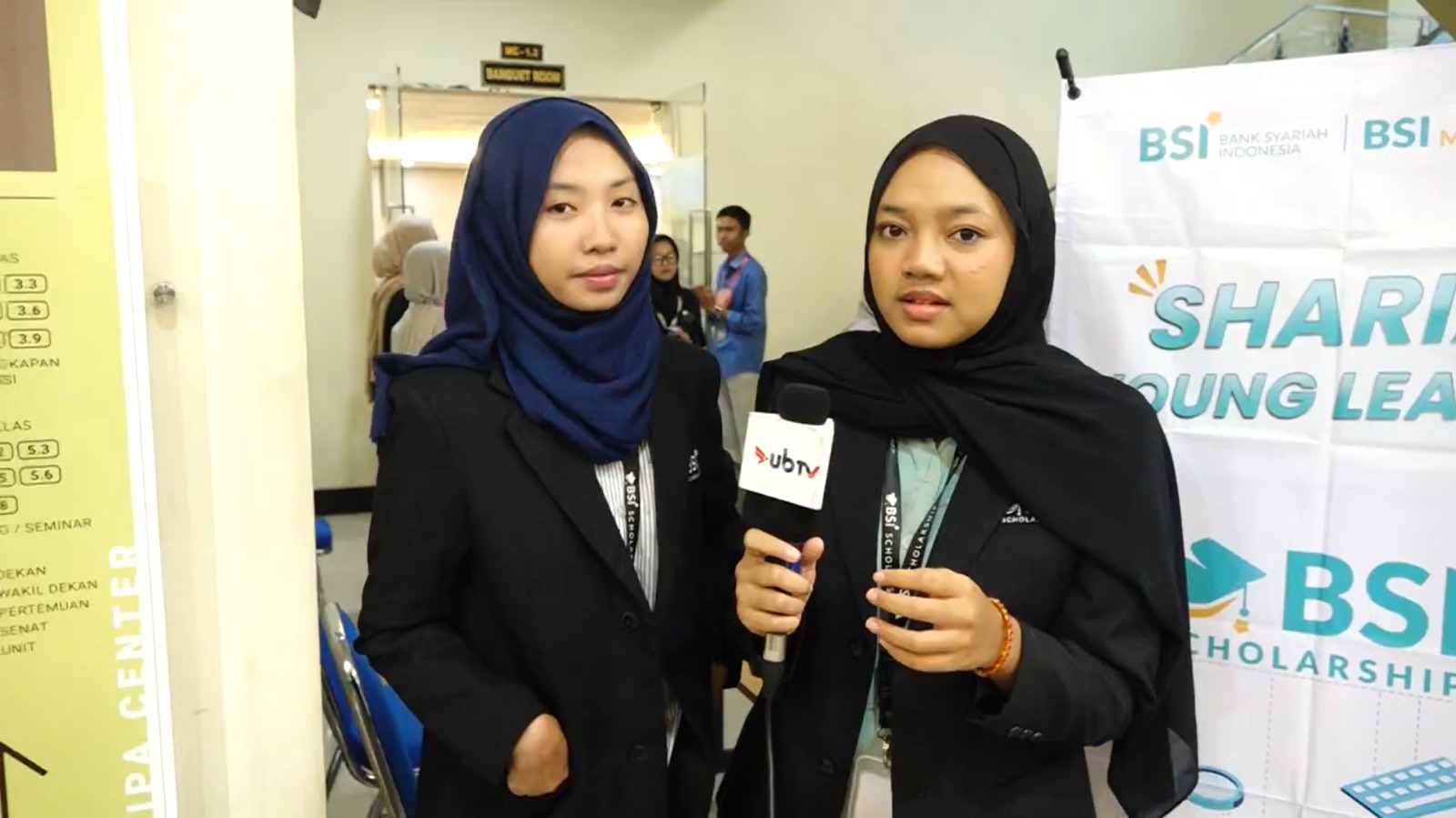 Dua perwakilan stand BSI, Zahra Salsabila, mahasiswa S1 Statistika, dan Aliya Mutia, mahasiswi Teknologi Informasi angkatan 2023 sekaligus penerima BSI Scholarship Prestasi, menjelaskan secara rinci ragam program beasiswa yang kini difokuskan oleh Bank Syariah Indonesia. Keduanya hadir untuk memberikan edukasi langsung kepada pengunjung mengenai peluang beasiswa, kriteria pendaftaran, hingga manfaat pengembangan diri yang disediakan BSI.