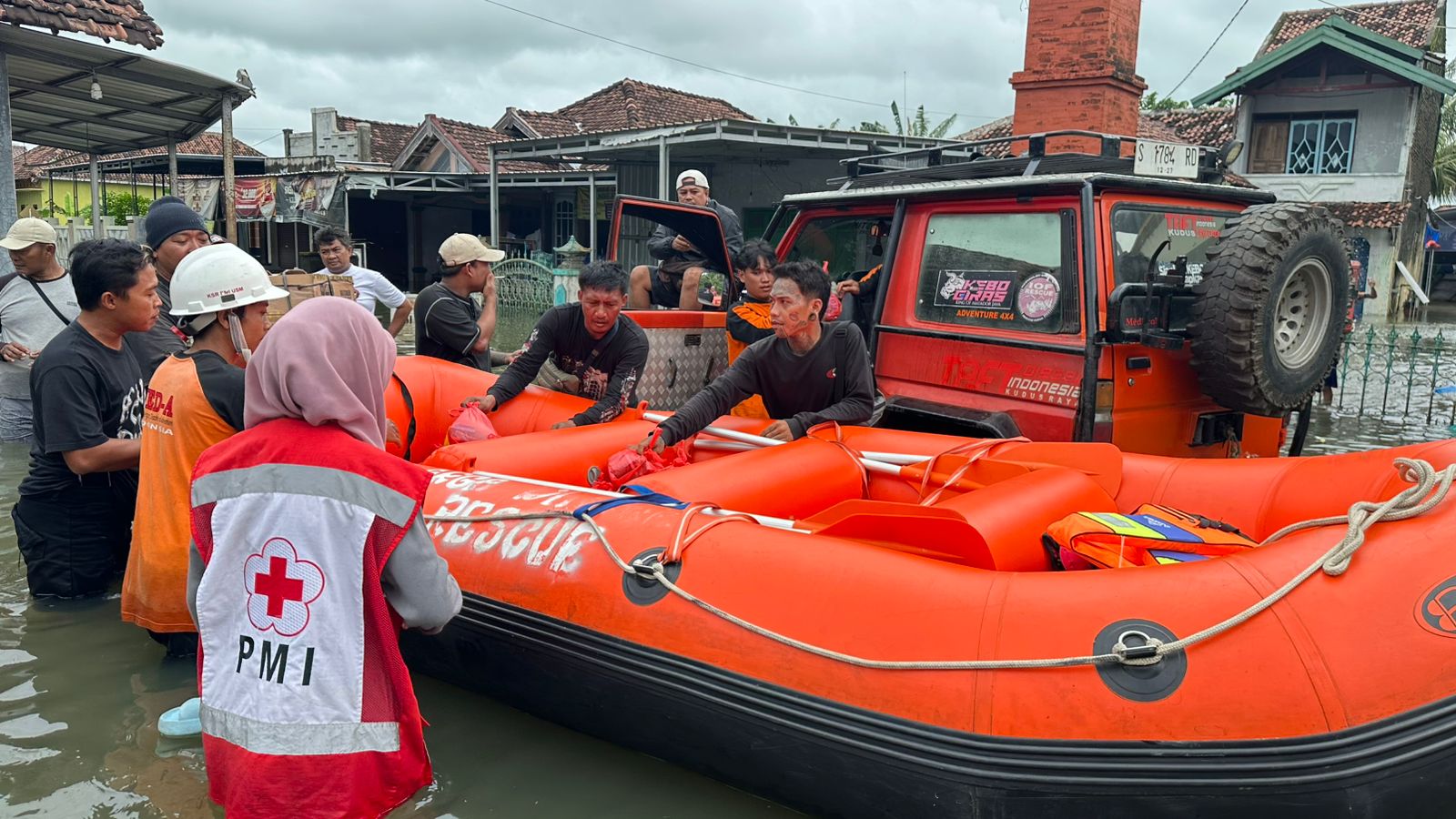 KANAL24, Malang – Banjir yang melanda Kudus masih menggenangi di berbagai wilayah sehingga membutuhkan dukungan logistik bagi warga yang terdampak. Relawan Universitas Semarang USM yang tergabung dalam UKM Koprs Sukarela (KSR) PMI dan Forum Komunikasi Mahasiswa Islam (FOKMI) bersama Mapala Universitas Muria kudus (UMK) terjun langsung membantu distribusi logistik dan evakuasi warga terdampak banjir di Dukuh Karanganyar Payaman Kecamatan Mejobo Kabupaten Kudus pada Minggu, 18 Januaari 2026.
