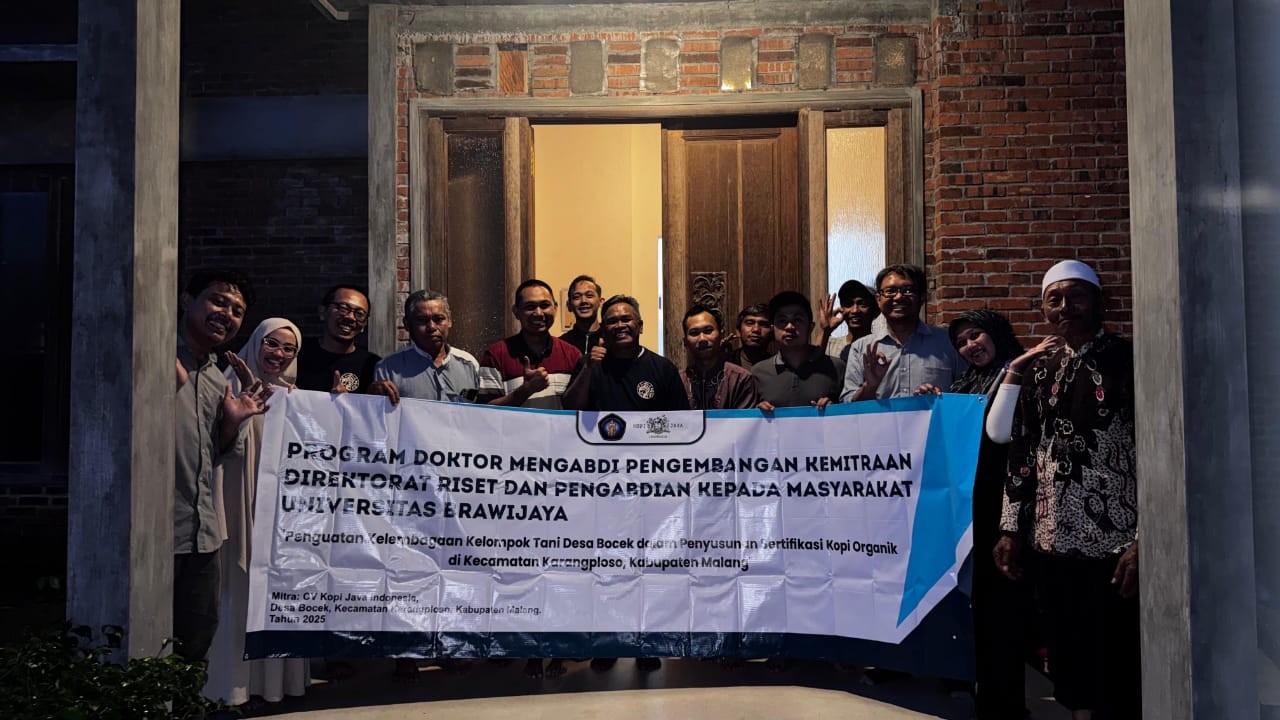 Poktan kopi Desa Bocek, Kecamatan Karangploso, Kabupaten Malang beranggota 20 petani. Bapak Arif Efendi adalah direktur UD. Kopi Java Indonesia membeli kopi hasil petani lereng Gunung Arjuna untuk diproses lebih lanjut menjadi green bean. Berdasar analisis situasi dan permasalahan mitra UD. Kopi Java Indonesia dan Poktan kopi Desa Bocek serta urgensi sertifikasi organik pada pasar Global, tim DM-PK Universitas Brawijaya berdasar pendanaan dari Direktorat Riset dan Pengabdian kepada Masyarakat (DRPM UB) melaksanakan Pelatihan Pembuatan Pupuk Organik dari Kotoran Hewan pada hari Rabu (29/10/2025) bagi 20 petani kopi di Desa Bocek, Karangploso, Malang.