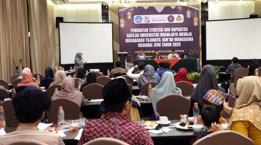 Kanal24, Malang — Bagi Universitas Brawijaya (UB), prestasi akademik tanpa landasan karakter dan spiritual bisa kehilangan makna. Sehingga, setiap kompetisi keagamaan antar mahasiswa bukan sekadar ajang unjuk kemampuan, melainkan bagian dari pembentukan identitas kampus religius. Dalam semangat itulah UB menggelar Penguatan Strategi dan Kapasitas Kafilah UB pada (1/10/2025), sebagai bagian dari persiapan akhir menjelang MTQ Mahasiswa Nasional (MTQMN) XVIII yang akan berlangsung di Banjarmasin.