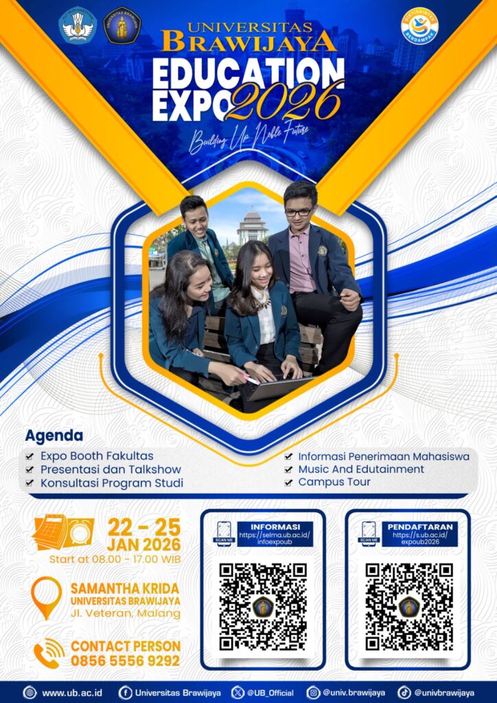Dosen Fakultas Ilmu Budaya (FIB) UB tersebut juga menegaskan bahwa seluruh peserta dapat mengikuti kegiatan ini secara gratis. Selain itu, UB Education Expo 2026 turut menghadirkan berbagai aktivitas menarik bagi pengunjung.