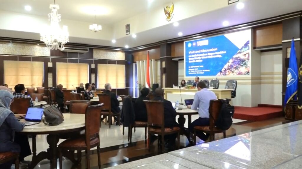 Kanal24, Malang – Universitas Brawijaya (UB) bersama Kementerian Pendidikan Tinggi, Sains, dan Teknologi menjadi tuan rumah acara Kunjungan dan Diskusi Peluang Kerjasama dari North-West University (NWU) Afrika Selatan, yang diselenggarakan pada Selasa (30/09/2025) di Ruang Jamuan, Gedung Rektorat Lantai 6. Pertemuan ini dihadiri oleh Ms. Nontsikelelo Kote selaku Executive Director Strategy and Strategic Projects NWU serta Plt. Kepala UPT International Academic Affairs UB, Hendrix Yulis Setyawan, Ph.D.